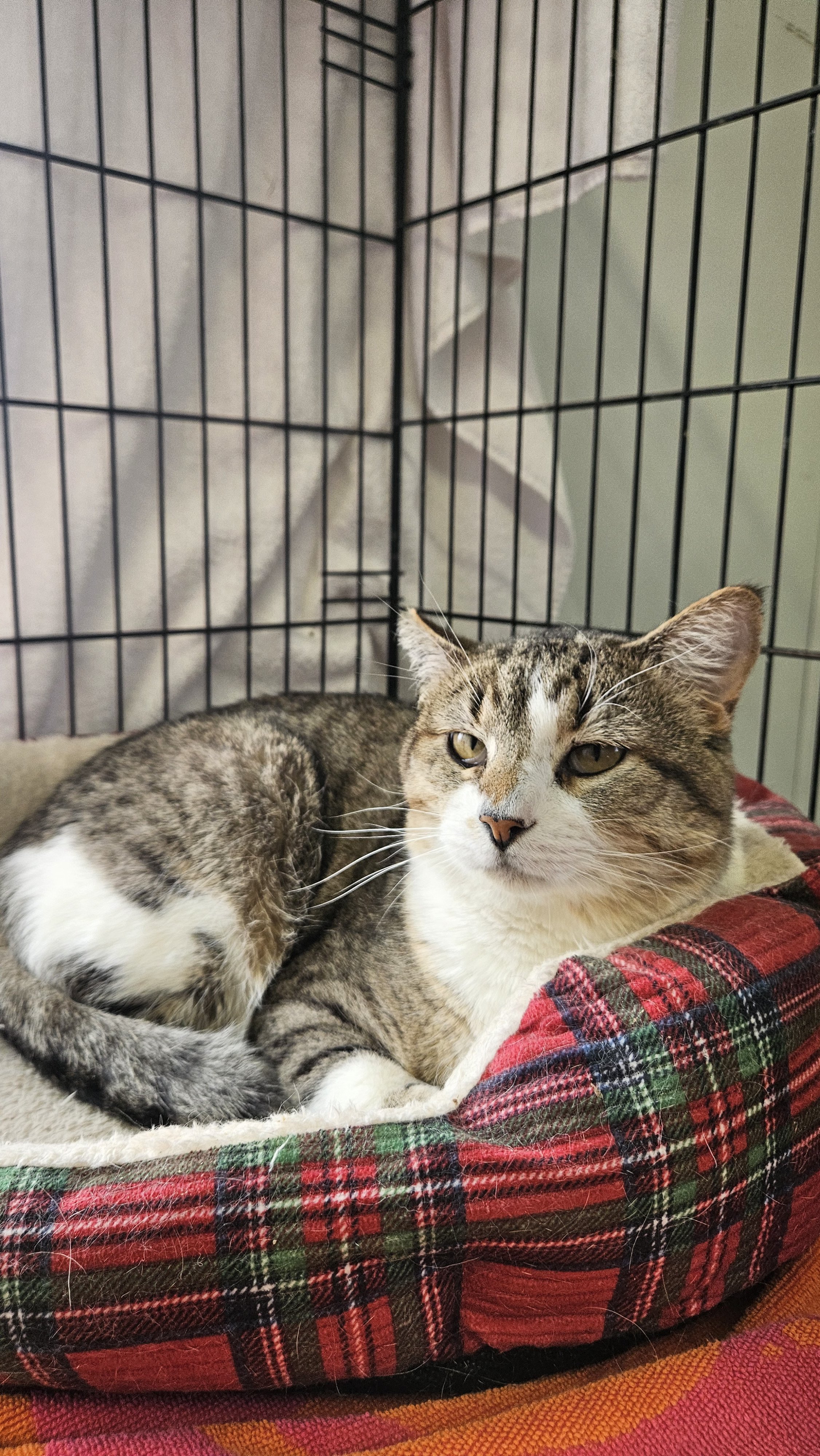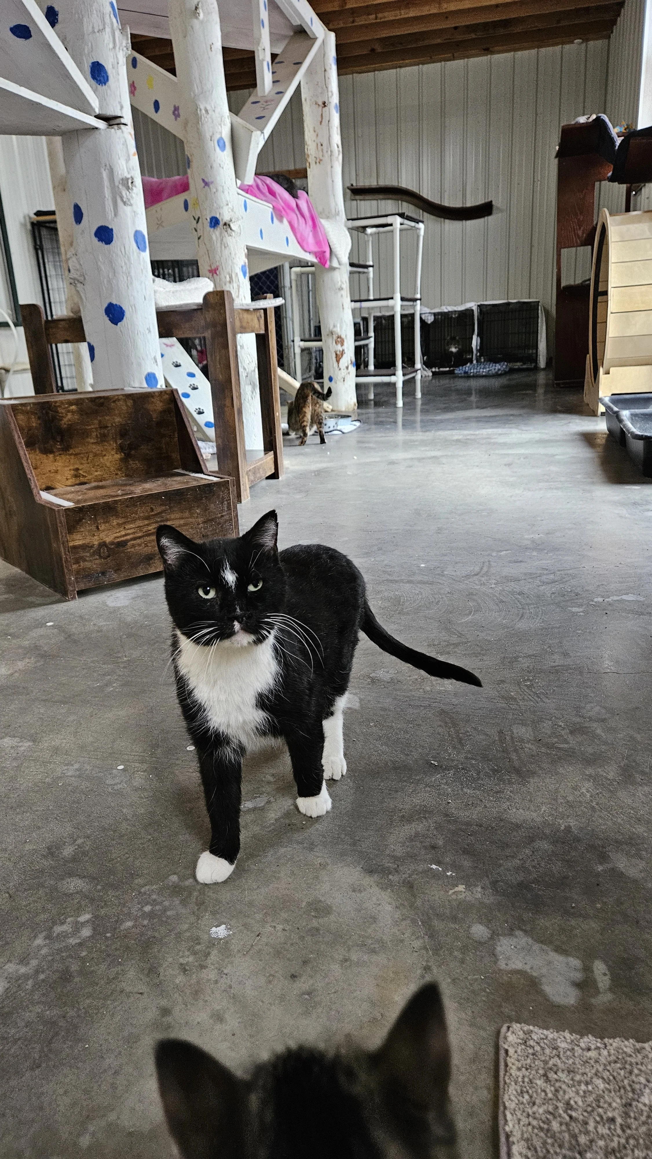 Turkey came in December 2024 as a stray. He’s in the cattery & happy for any attention! He’s pretty chill and we get a kick out of his “judging you” face.