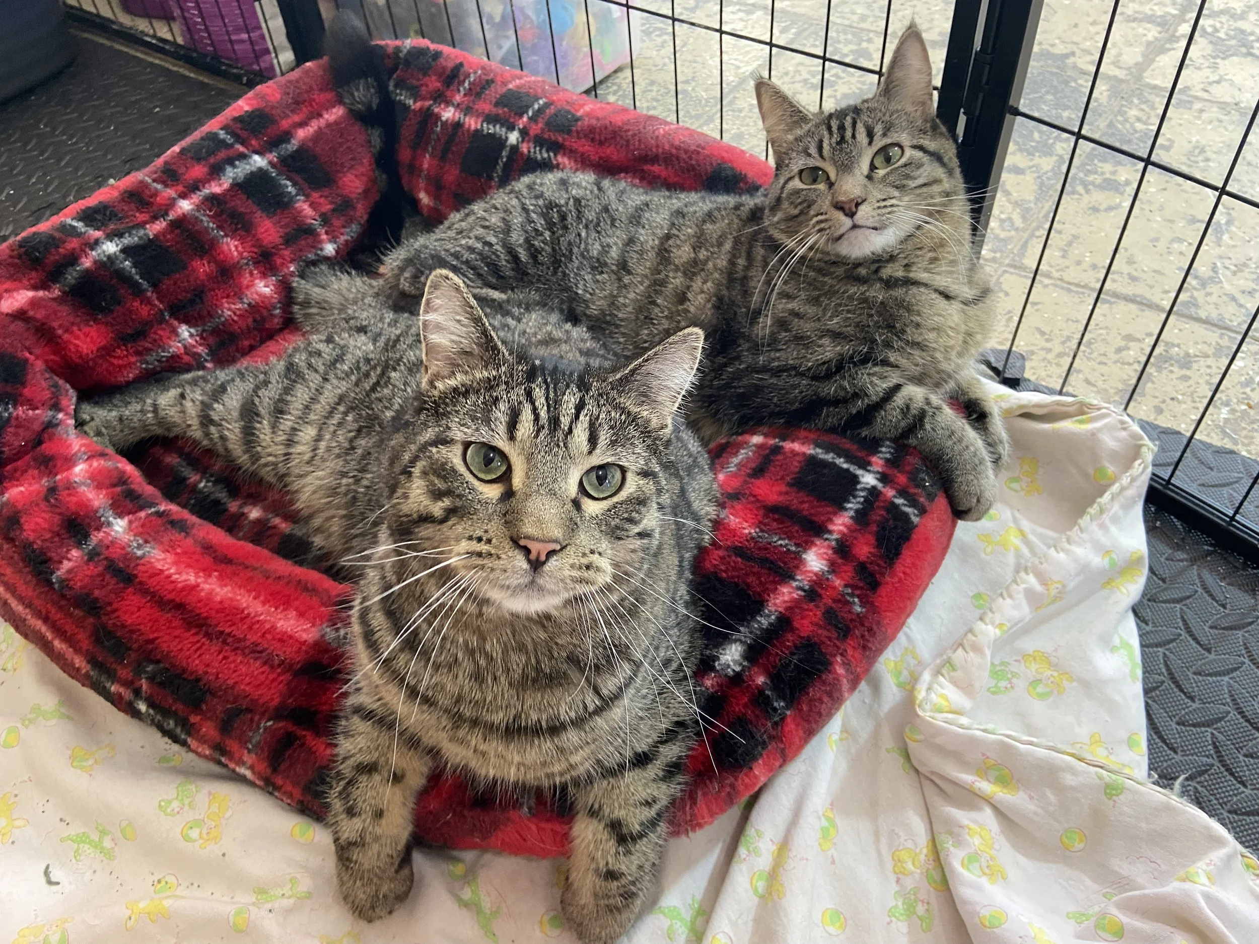 Weeble is the female.Weeble and Wobble were born here at the shelter with 2 other littermates. All 4 of them were born with cerebellar hypoplasia. This means their mother had distemper or was given the distemper vaccine and therefore the kittens’ cerebellums didn’t fully develop. They both wobble all the time but it doesn’t cause them any pain. They would need a home with no stairs and mainly carpet. They don’t seem to like other cats. They aren’t upset by the presence of dogs but wouldn’t handle big dogs well because of their wobbles.