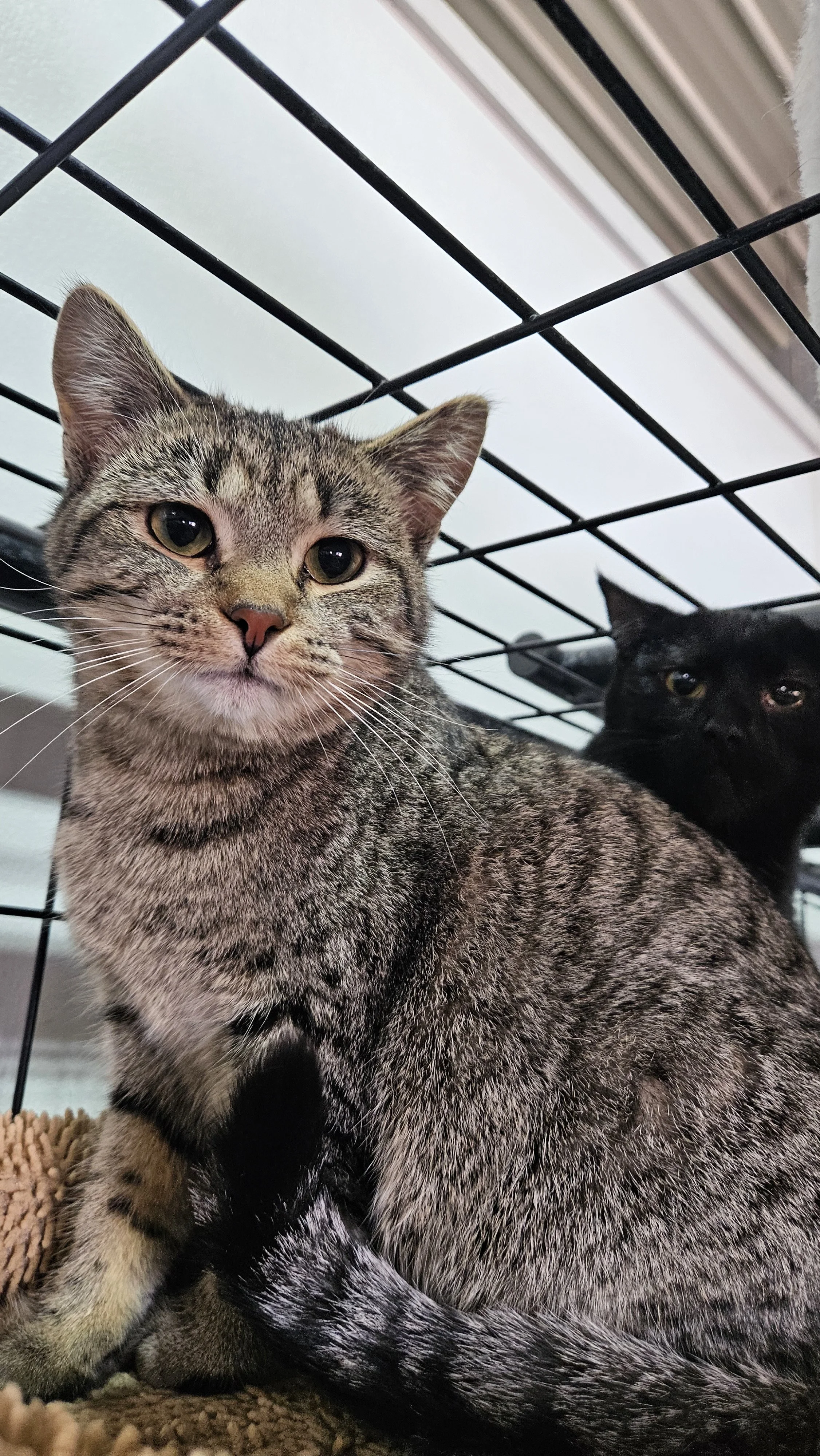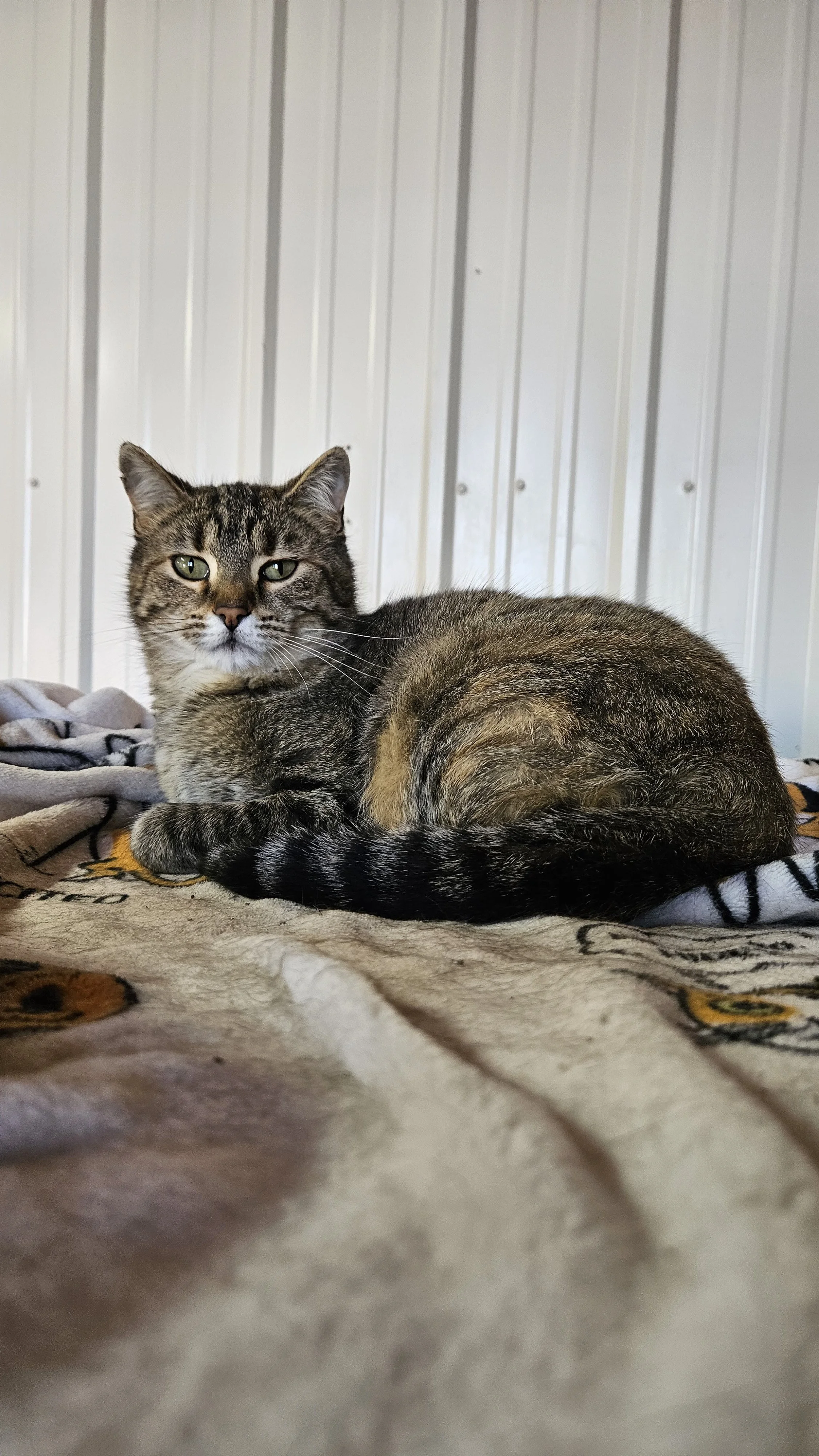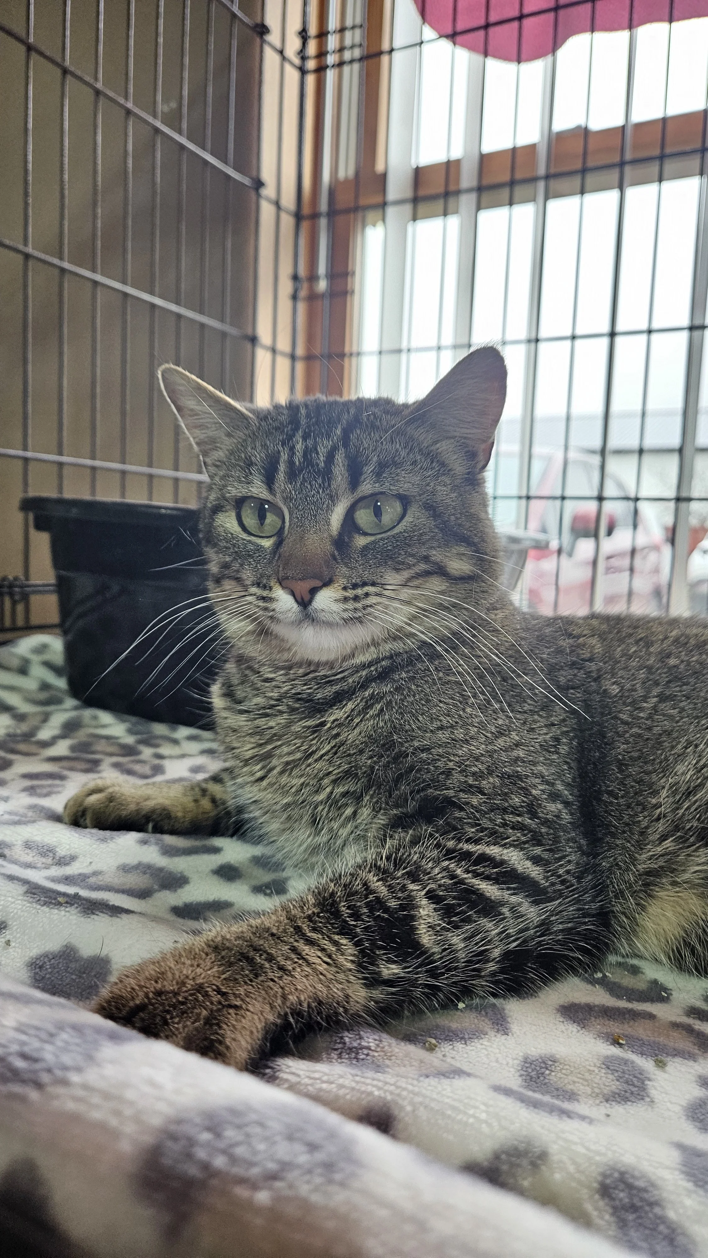 Tabby came to us as a stray in August 2025. She has become more social and affectionate recently and we are so happy to see her happy! But, she would sure be happier in a loving home and out of the kennel. We hope you come and fall in love with this gorgeous gal!