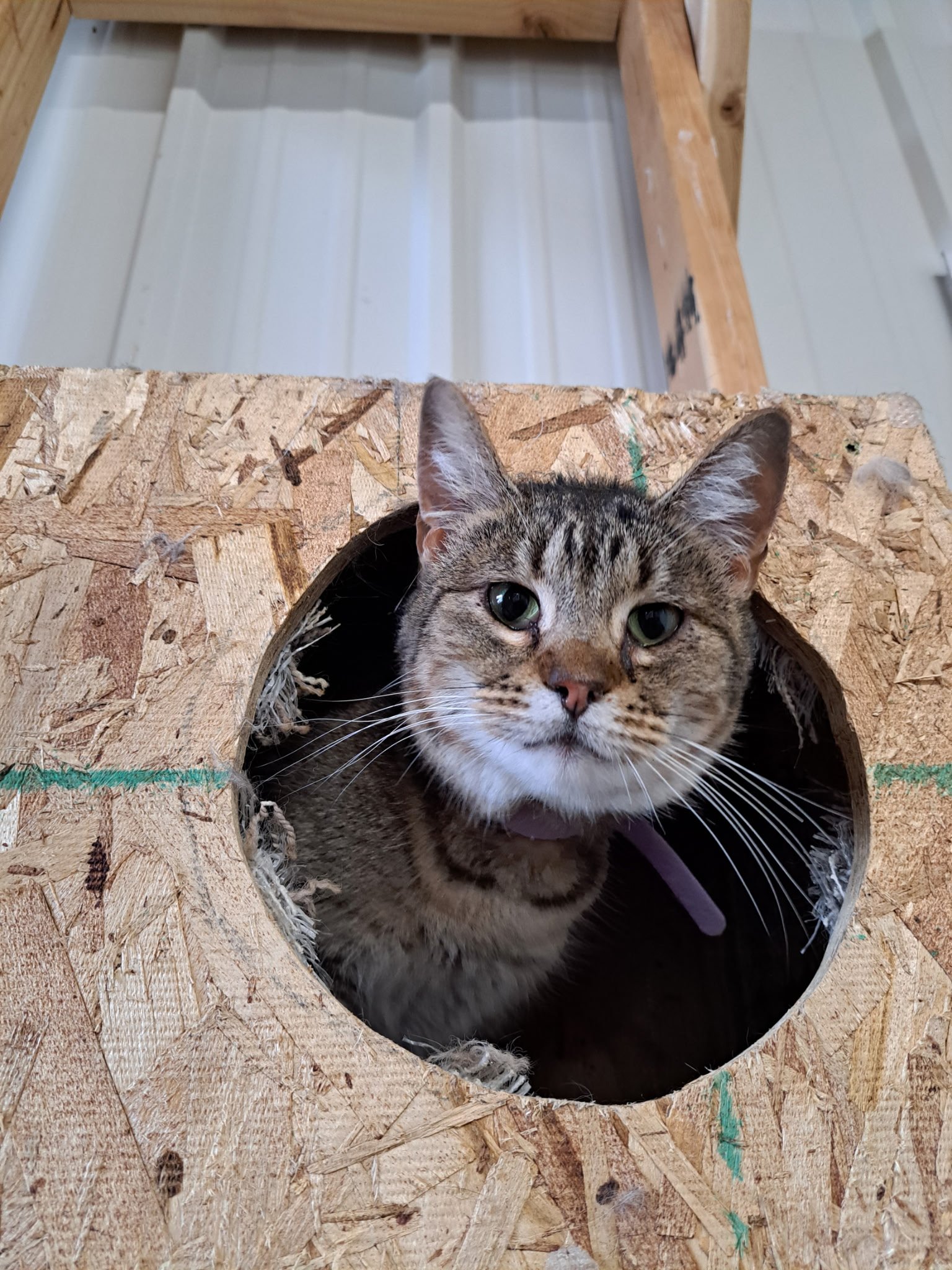Ellie came in as a stray in June 2025. Since then she has really opened up. She is quite curious and likes to explore. Ellie loves getting attention and pets as well.