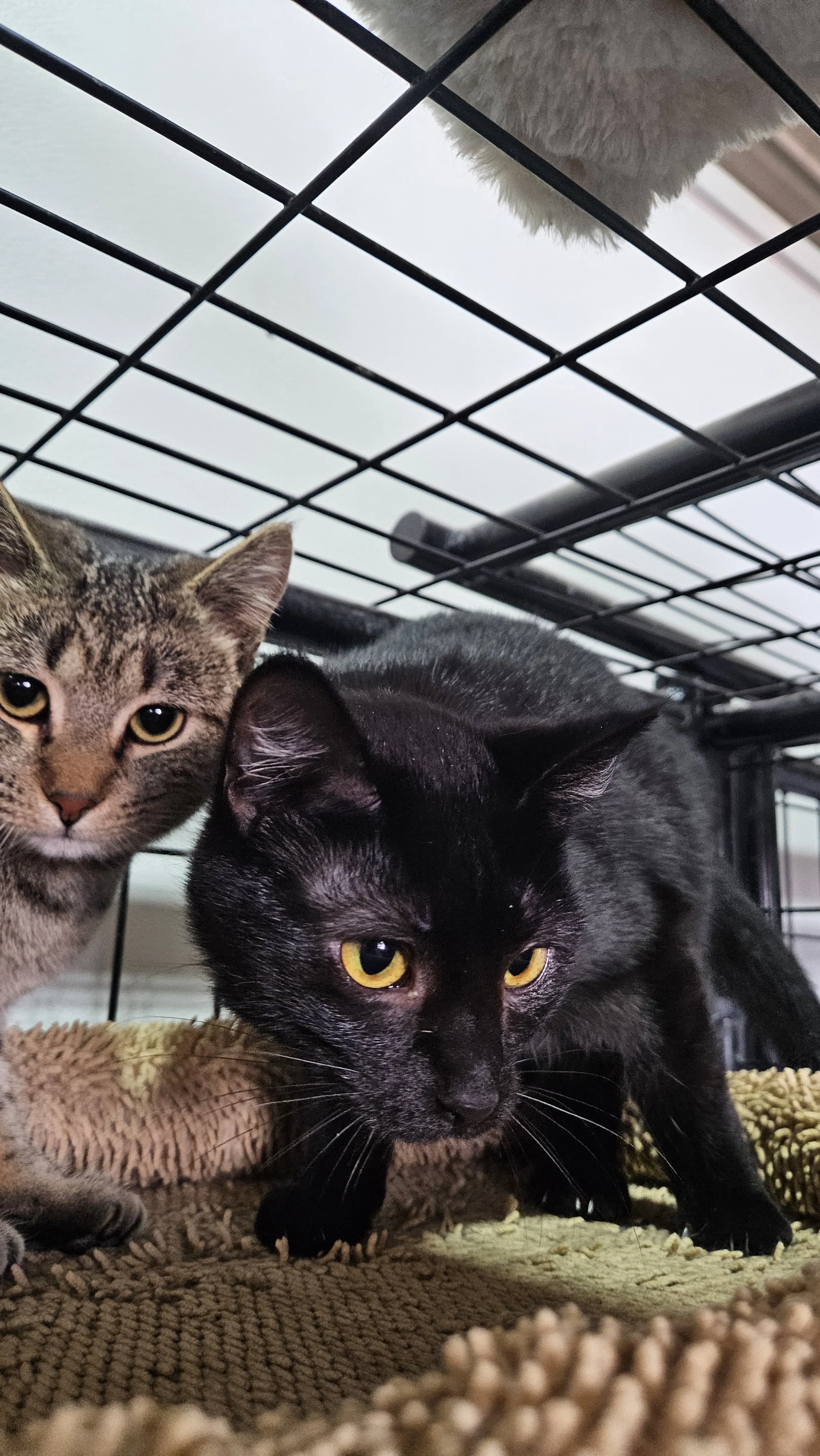 Twilight was born at the shelter on May 1, 2025. She is the last of her 4 siblings still at the shelter. She is a very relaxed and gentle girl but is getting more and more outgoing (coming up to greet visitors) every day. She is in the cattery and likes to snuggle with the other cats. She’ll gladly take any pets that come her way.